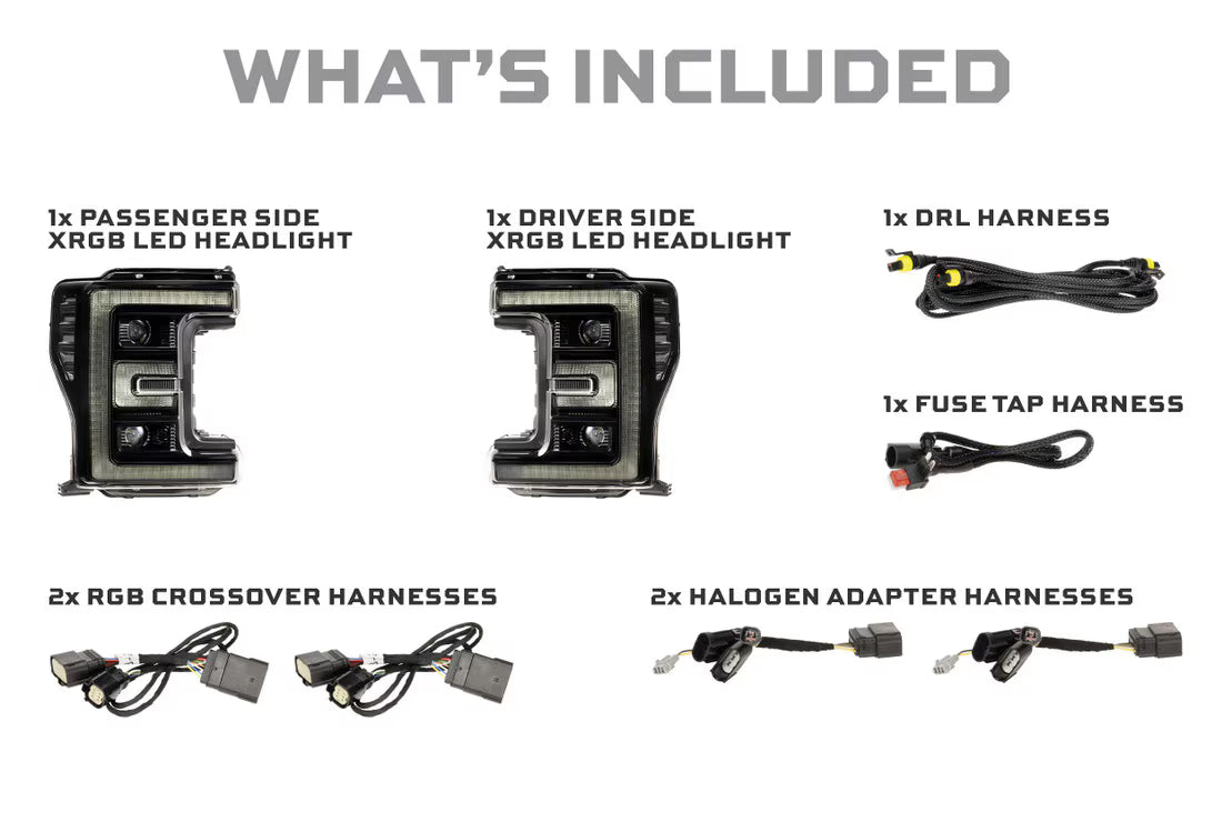 Die Morimoto Hybrid XB LED-Scheinwerfer – eine kostengünstige Lösung zur Verbesserung der Lichtleistung Ihres Fahrzeugs. Diese Scheinwerfer sind von den OEM-LED-Scheinwerfern des F250 (Modelljahre 2017–2019) inspiriert und bieten im Vergleich zu ihren Premium-Pendants erhebliche Einsparungen. Mit ihrem einzigartigen „Hybrid“-Design kombinieren sie LED- und Glühlampen für außergewöhnliche Funktionalität. Das LED-Tagfahrlicht ist brillant hell und tagsüber gut sichtbar und hat die gleiche Optik wie die High-End-XB-Modelle. Diese Scheinwerfer verfügen außerdem über einen getönten Diffusor, einen bernsteinfarbenen LED-Seitenmarkierungsscheinwerfer und Halogen-Blinkerlampen für eine umfassende Ausleuchtung. In puncto Leistung überzeugen die Hybrid XB-Scheinwerfer mit leistungsstarken LED-Abblend- und Fernlichtprojektoren, die trotz ihres günstigen Preises ein beeindruckendes Lichtmuster erzeugen. Sie sind straßenzugelassen und DOT-geprüft und erfüllen und übertreffen die Vorschriften SAE, DOT und FMVSS108. Die Installation ist problemlos und erfordert nur drei Plug-and-Play-Anschlüsse für Abblendlicht, Fernlicht, Blinker und Tagfahrlicht.
