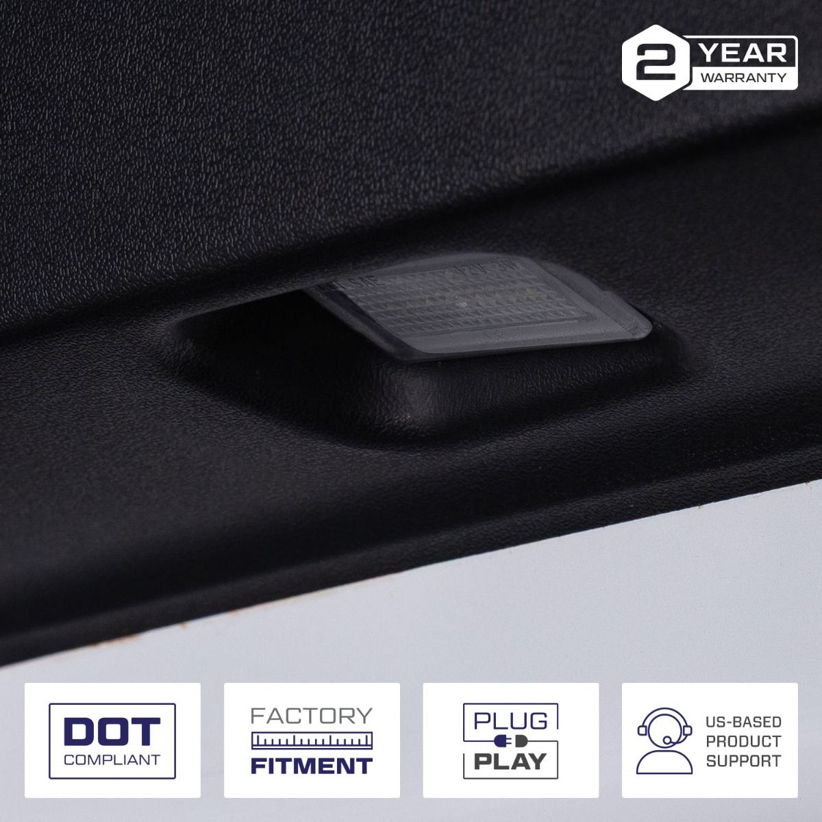 Erhöhte Leistung. Diese LED-Türleuchten bieten eine deutlich verbesserte Leistung im Vergleich zu den Standardlampen mit 6000K Kaltweiß-LED-Chips. Mit diesen hochwertigen Ersatzteilen in Erstausrüsterqualität heben Sie sich mit einem extrem modernen Look von der Masse ab.