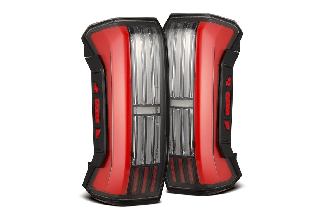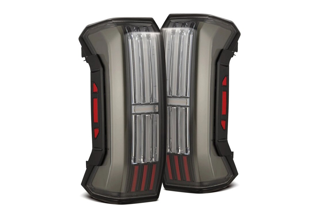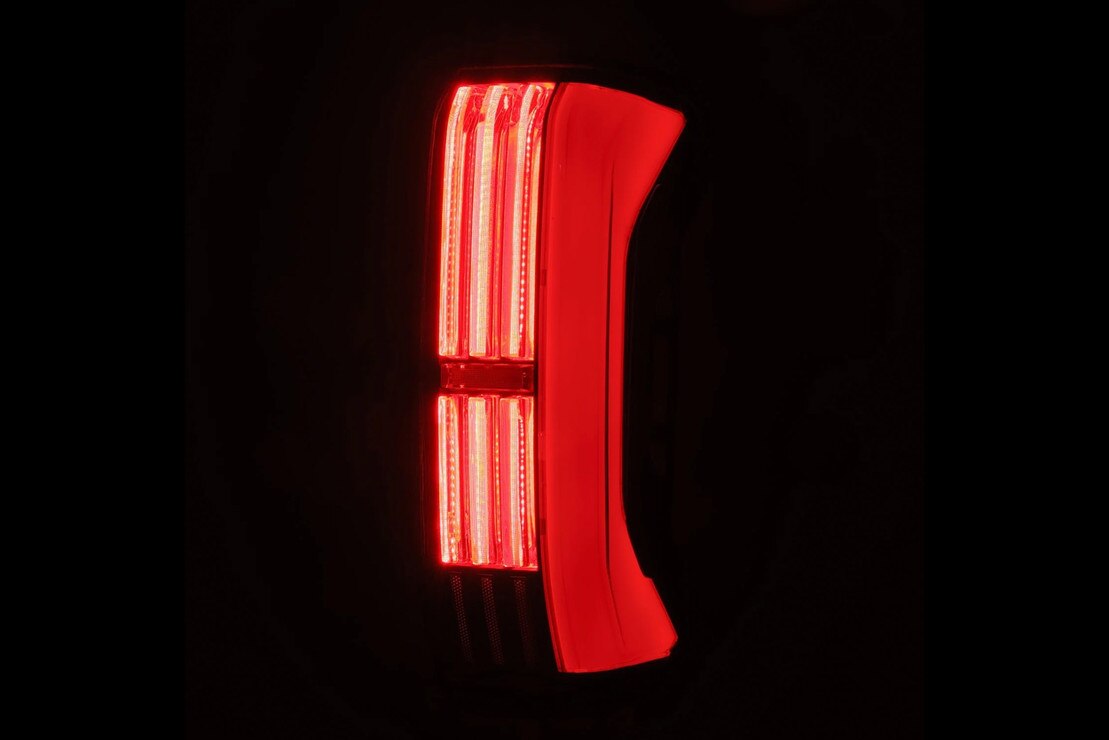 Die prismatischen LED-Rückleuchten der 4. Generation der Toyota Tundra NOVA-Serie vereinen fortschrittliche Technologie mit elegantem Design und werten die Rückleuchten Ihres Trucks auf. Diese Rückleuchten verfügen über drei gerade LED-Röhren mit sechs trapezförmigen Prismen, eine zentrale LED-Röhre und drei Reflektoren. Die Prismen verwenden rote LEDs für das Standlicht, die beim Bremsen heller werden. Bernsteinfarbene LEDs in den Prismen und der zentralen Röhre erzeugen einen dynamischen sequentiellen Blinker, während eine seitliche LED-Röhre für zusätzliche Sichtbarkeit des Standlichts sorgt. Diese Rückleuchten nutzen die von den Scheinwerfern der NOVA-Serie inspirierte AlphaRex Prism Optics-Technologie für außergewöhnliche Sichtbarkeit und Sicherheit auf der Straße. Das Gehäuse hat ein glänzend schwarzes Finish mit eleganten Akzenten und verleiht Ihrem Tundra einen sportlichen Look. Durch die klare Linse können Sie das detaillierte Design im Inneren sehen, während die robuste Linse aus Polycarbonat-Kunststoff stoßfest ist. Eine spezielle Beschichtung der Linse schützt vor Vergilbung und Oxidation durch Sonnenlicht und stellt sicher, dass Ihre Rückleuchten lange Zeit klar und elegant bleiben. Mit diesen Funktionen verleihen die prismatischen LED-Rücklichter der NOVA-Serie Ihrem Toyota Tundra ein markantes neues Aussehen und zuverlässige Leistung.
