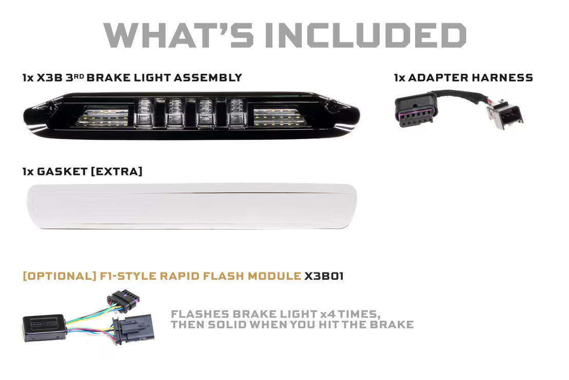 Fácil instalación: el X3B reutiliza todos los puntos de montaje originales, se ajusta como la luz de freno de fábrica y se conecta al mazo de cables original. No se requieren modificaciones para la instalación.