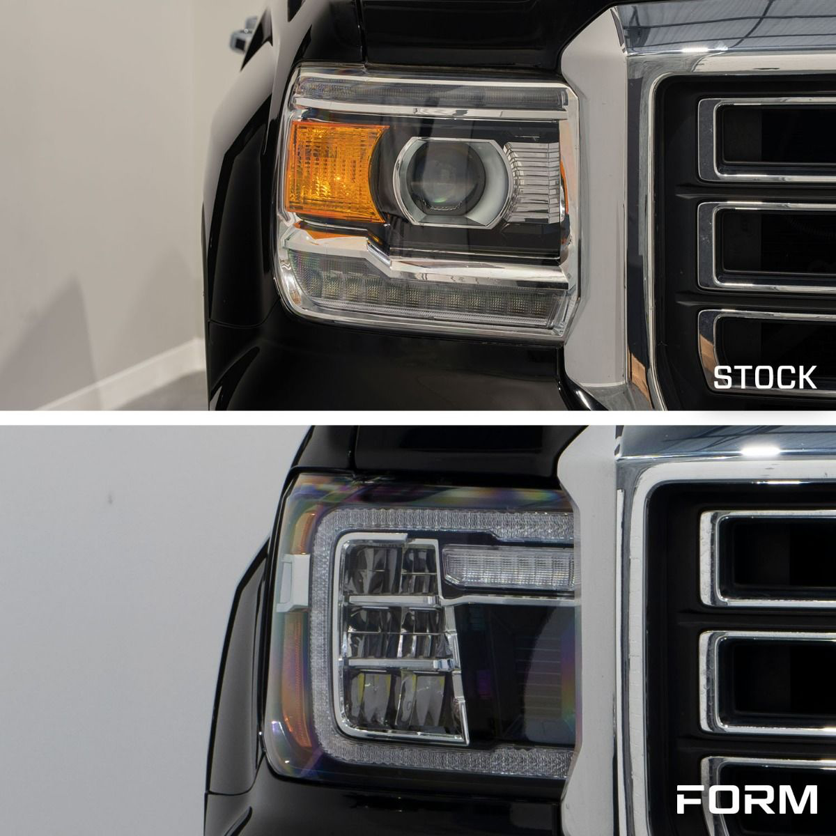 La GMC Sierra es una camioneta excelente, con muchas características modernas. GM comenzó a incluir componentes LED en los faros delanteros, pero no llegó a ser completamente LED. Con los faros delanteros mejorados de Form Lighting, puede agregar funcionalidad LED completa a su camioneta, junto con una serie de características modernas.
