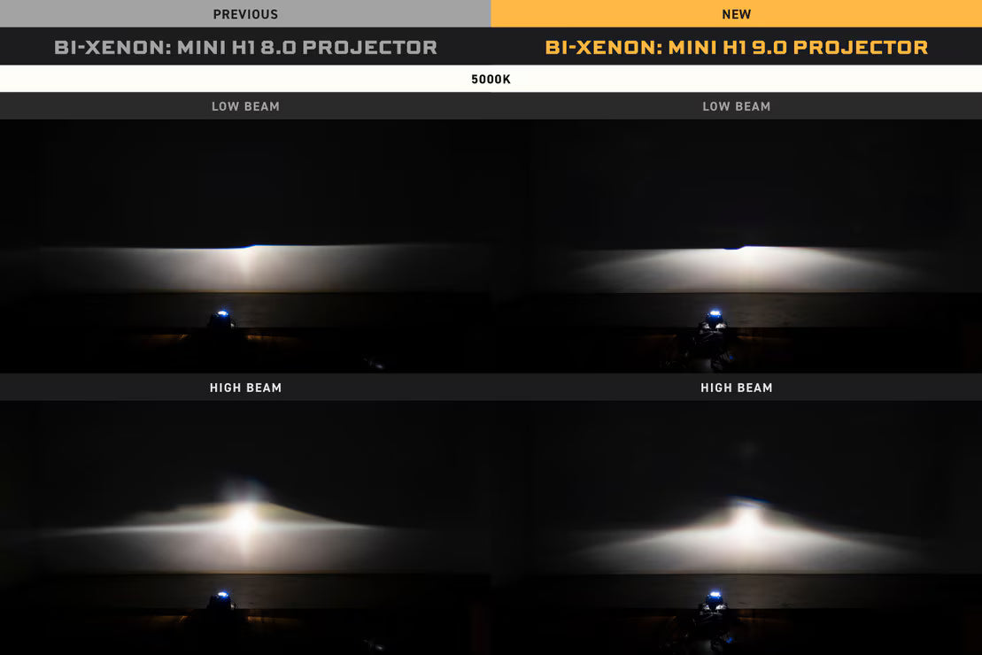 PERFECCIÓN CUÁDRUPLE: Si te mueres por hacer una actualización con un proyector cuádruple pero no tienes espacio dentro de tus luces para algo más grande, nunca ha habido un mejor momento. Ahora que el proyector compacto Mini H1 utiliza un corte de estilo inclinado para combinar con sus hermanos mayores como el D2S 5.0 o el MLED 2.0, puedes hacer una actualización cuádruple con patrones de haz que combinen perfectamente en todo el ancho. ¡Ah, sí!