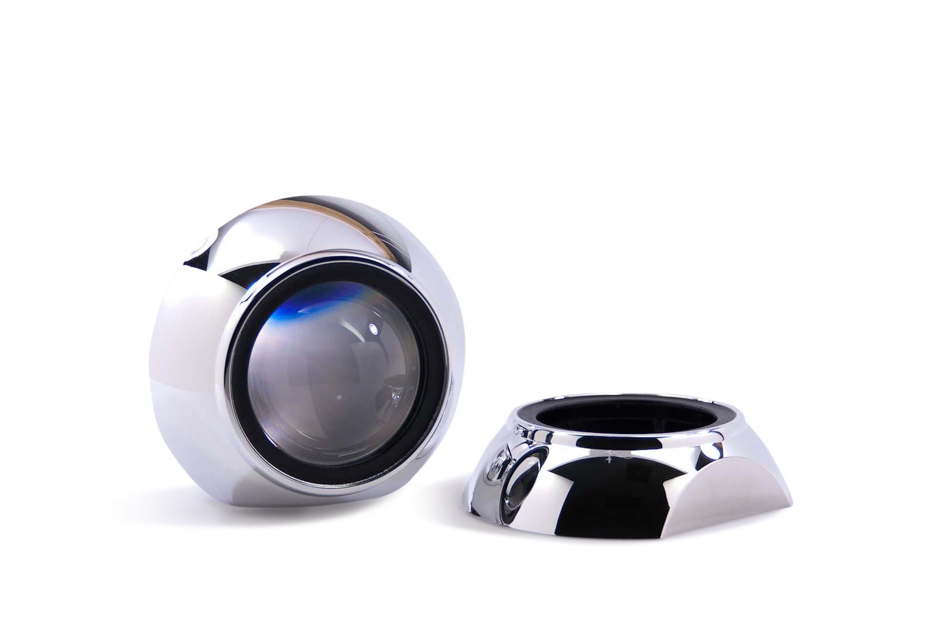Iris: Tan suave como viene: la cubierta Iris es una forma limpia de cubrir. Este clásico instantáneo está inspirado en el Volkswagen Tiguan. Iris se trata de agregar un estilo limpio y ordenado a su modernización. Cuentan con un borde negro texturizado que rodea la lente del proyector de vidrio en el interior, rodeado por un acabado de cromo metalizado al vacío perfectamente suave. En comparación: No cometa el error de pensar que todas las cubiertas son iguales. Aunque puede haber alternativas menos costosas disponibles en otros lugares: las cubiertas Morimoto están hechas de plástico de la más alta calidad y tienen, con mucho, los acabados de cromo metalizado más duraderos. Los más baratos que existen son lo suficientemente endebles como para deformarse con el calor de una bombilla HID de 35 W, y su acabado cromado se desprende fácilmente. A o B: En nuestro taller, también somos meticulosos con el control de calidad. Si una cubierta tiene un defecto de fábrica menor; Lo vendemos con descuento como unidad "B Stock", lo que es perfecto para modernizaciones económicas o cuando pintarlas es parte de los planes. Si no se conforma con nada menos que perfecto y planea dejarlas cromadas, elija las cubiertas "A Stock". Montaje: Los anillos céntricos no están incluidos de forma predeterminada, pero son muy recomendables para mejorar la facilidad de instalación en muchos proyectores. Los anillos céntricos son reductores simples que se enganchan en la cubierta para reducir el diámetro interior, lo que hace que se ajusten más a presión en el soporte de la lente del proyector. También se recomienda JB Quik Weld para evitar que las cubiertas se aflojen por vibración con el tiempo. Halos LED: son una forma única y efectiva de personalizar aún más el aspecto de su modernización del proyector. Los sistemas Profile Pivot (switchback) y Profile Pixel (RGB) son fáciles de montar en la parte delantera de las cubiertas, son confiables y, por supuesto, tienen un aspecto increíble. Para determinar qué tamaño es mejor para usted, consulte la guía de tamaños en las imágenes de arriba. Recorte: tenga en cuenta que recortar las cubiertas es una tarea habitual durante la modernización. Ya sea que se requiera para despejar parte del proyector o para que encajen en la geometría de la carcasa del faro, es normal. Afortunadamente, están hechas de plástico, lo que hace que sea fácil hacerlo. Recomendamos una herramienta manual Dremel con ruedas de corte EZ Lock para facilitar el trabajo.