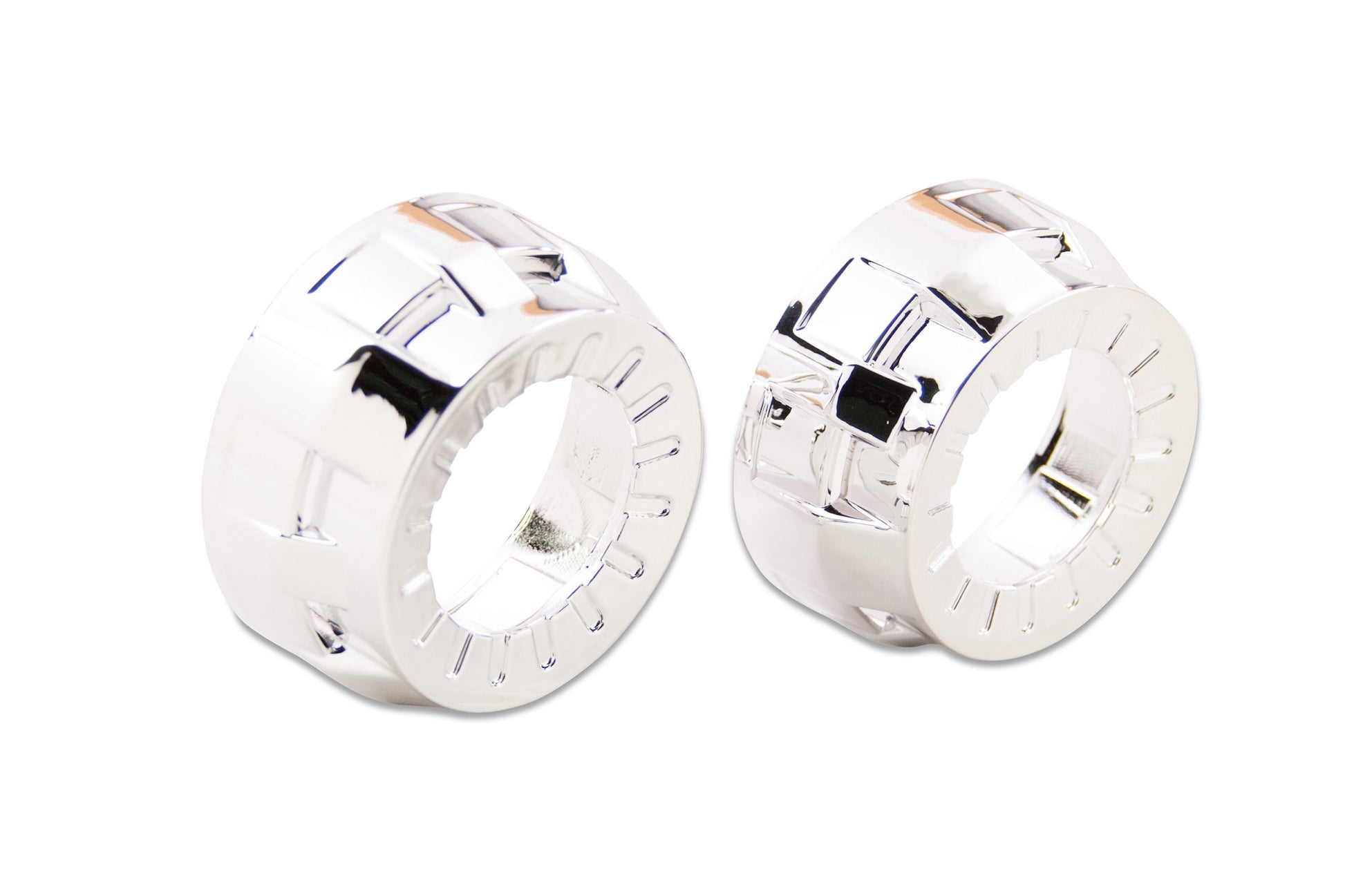 MicroGatling: La Micro Gatling Gun es la versión más pequeña del popular diseño Gatling Gun, hecha para usarse exclusivamente con los proyectores bi-xenón Morimoto Matchbox, también debería funcionar bien en una variedad de otros proyectores de luces antiniebla OEM. En comparación: No cometa el error de pensar que todas las cubiertas son iguales. Aunque puede haber alternativas menos costosas disponibles en otros lugares: las cubiertas Morimoto están hechas de plástico de la más alta calidad y tienen, con diferencia, los acabados de cromo metalizado más duraderos. Las más baratas que hay son lo suficientemente endebles como para deformarse con el calor de una bombilla HID de 35 W, y su acabado cromado se descascara fácilmente. Halos LED: Son una forma única y eficaz de personalizar aún más el aspecto de su proyector modernizado. Los sistemas Profile Pivot (conmutación) y Profile Prism (RGB) son fáciles de montar en la parte delantera de las cubiertas, son fiables y, por supuesto, tienen un aspecto impresionante. Para determinar qué tamaño es mejor para usted, consulte la guía de tamaños en las imágenes de arriba. Estas cubiertas cuentan con ventilaciones DRL que brillarán con luz si desea hacer algo un poco diferente y montar los halos en el interior. Recorte: tenga en cuenta que recortar las cubiertas es una tarea común al realizar modificaciones posteriores. Ya sea que se requiera para despejar parte del proyector o para que encajen dentro de la geometría de la carcasa del faro, es normal. Afortunadamente, están hechas de plástico, lo que hace que sea fácil. Recomendamos una herramienta manual Dremel con ruedas de corte EZ Lock para facilitar el trabajo.