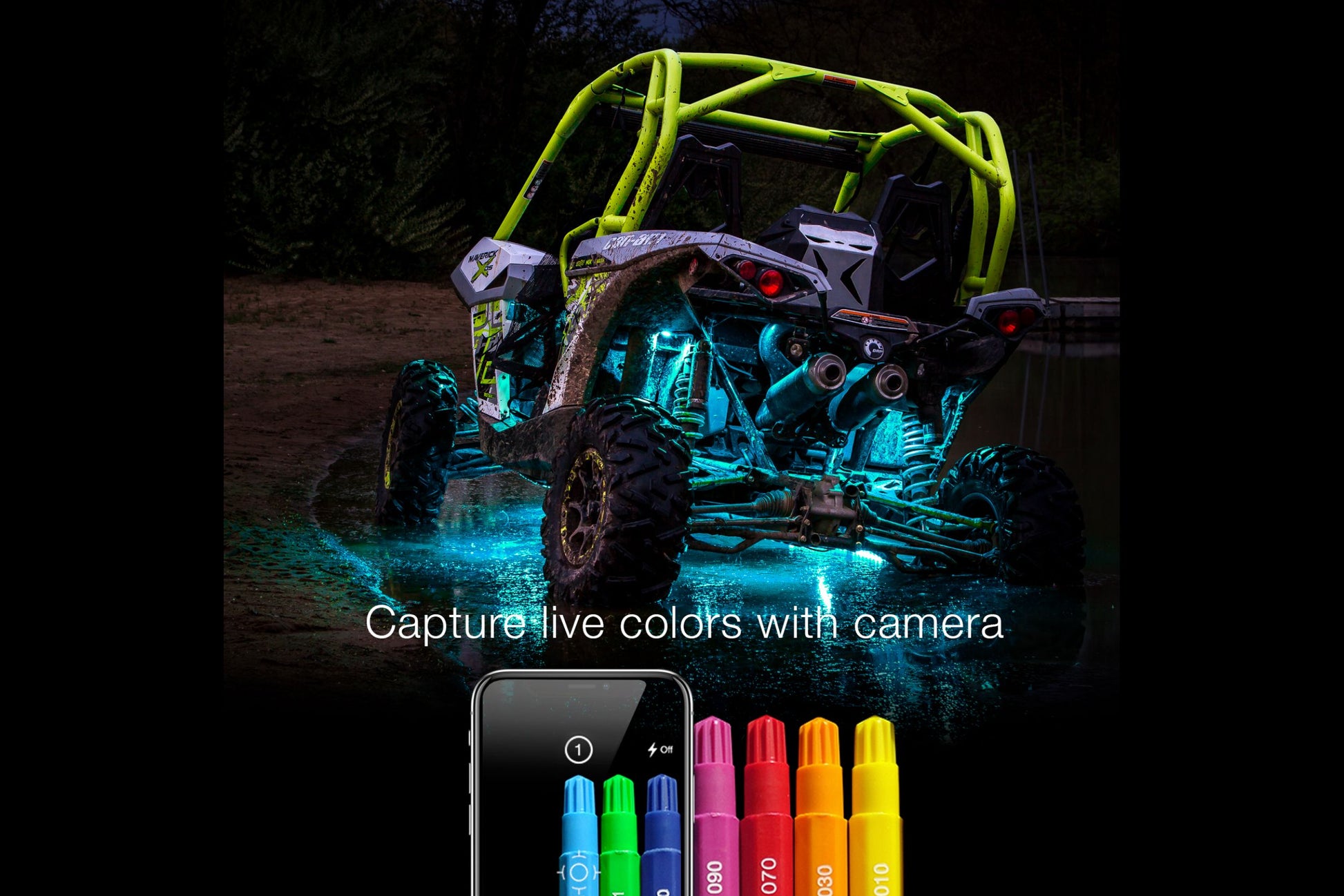 Obtenga el control sin su teléfono: No siempre tenemos nuestros teléfonos con nosotros, pero eso no limita su capacidad para usar la aplicación y los componentes XKChrome. Este controlador resistente al agua y robusto se puede montar en la superficie de su automóvil, camión, ATV, bote, etc. y su teléfono se puede guardar para un almacenamiento seguro. De XKGlow: Construido en base a las altas demandas de los clientes, este controlador de montaje en tablero se puede controlar a través de los botones del tablero o el control de la aplicación XKChrome bluetooth. En el modo de control del tablero, el cliente puede cambiar directamente el color, el brillo y los patrones y el último color ejecutado se guardará automáticamente. El controlador está completamente encapsulado para IP 67 y puede soportar duras condiciones marinas o todoterreno. Controladores XKChrome: A menudo considerado como una de las mejores aplicaciones RGB Bluetooth, XKChrome de XKGlow ciertamente tiene una amplia variedad de modos y funciones para adaptarse a todos los gustos. Además de poder seleccionar casi cualquier color, la aplicación incluye la opción de combinar un color según la cámara de tu teléfono, 15 temas preestablecidos, un modo de creación de temas, función de anulación de señal de giro, colores relacionados con la velocidad, sincronización de música y una anulación de cable sensor. ¡Salvaje!
