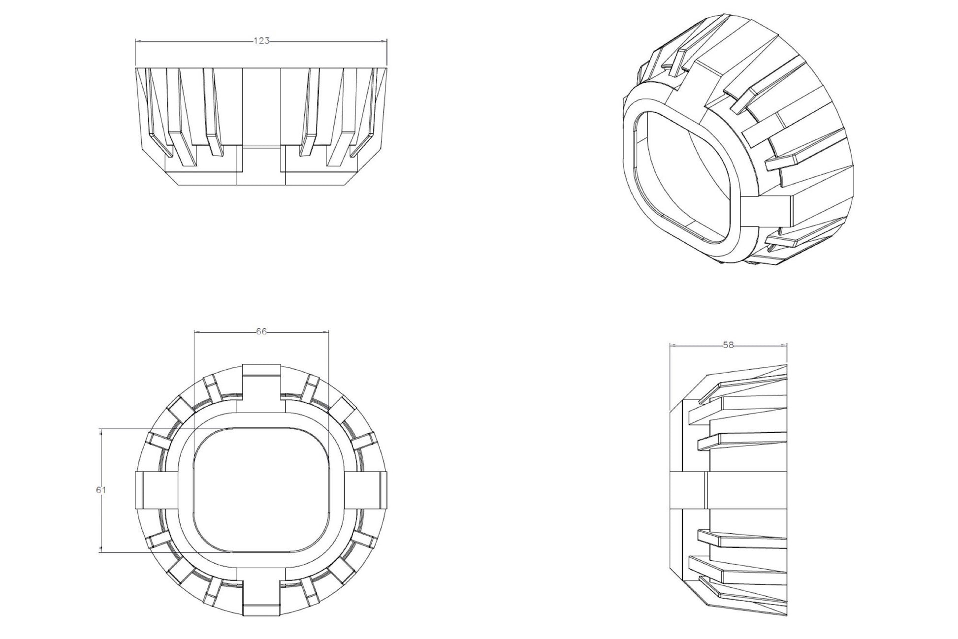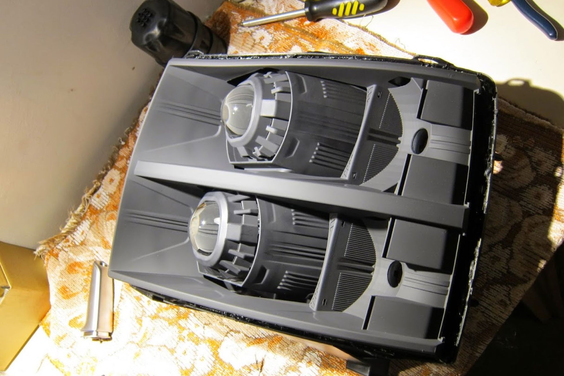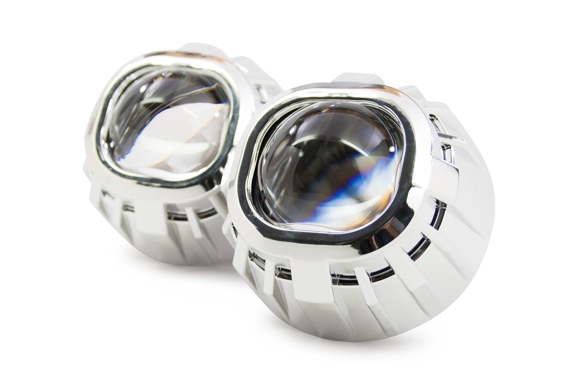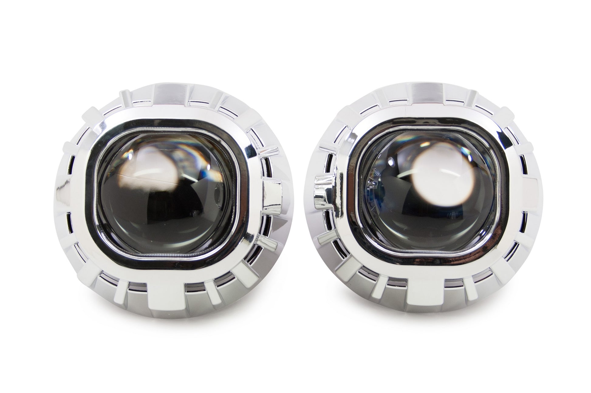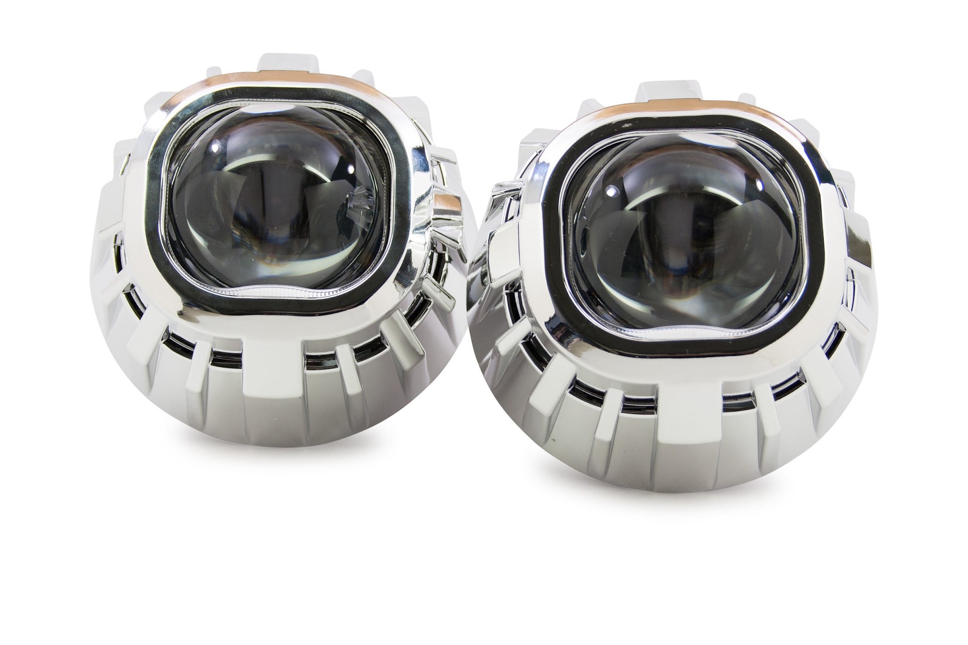 Gatling Gun 2.0 Square: una versión doble de un clásico muy popular, la cubierta Gatling 2.0 Square es la opción perfecta para agregar un aspecto más agresivo y vanguardista a una actualización con los proyectores de lente cuadrada Morimoto Mini D2S 4.0. En comparación con las otras cubiertas específicas de X-Lens, la Gatling 2.0 tiene más profundidad, lo que equivale a una mayor cobertura. Esto es importante al actualizar el Mini D2S 4.0 debido a su posición de asiento naturalmente hacia adelante dentro del faro. NOTA: La Gatling Gun 2.0 Square solo se adapta al Morimoto Mini D2S 5.0 con la opción de "Lente cuadrada". En comparación: No cometa el error de pensar que todas las cubiertas son iguales. Aunque puede haber alternativas menos costosas disponibles en otros lugares: nuestras cubiertas están hechas de plástico de la más alta calidad y tienen los acabados de cromo metalizado más duraderos. Las bombillas baratas que se venden por ahí son lo suficientemente endebles como para deformarse con el calor, como una bombilla HID de 35 W, y su acabado cromado se descascara fácilmente. Montaje: se recomienda JB Quik Weld para evitar que las cubiertas se aflojen por vibración con el tiempo. Recorte: tenga en cuenta que recortar las cubiertas es una tarea habitual al realizar modificaciones. Ya sea que se requiera para despejar parte del proyector o para que encajen en la geometría de la carcasa del faro, es normal. Afortunadamente, están hechas de plástico, lo que hace que eso sea fácilmente posible. Recomendamos una herramienta manual Dremel con ruedas de corte EZ Lock para facilitar el trabajo.