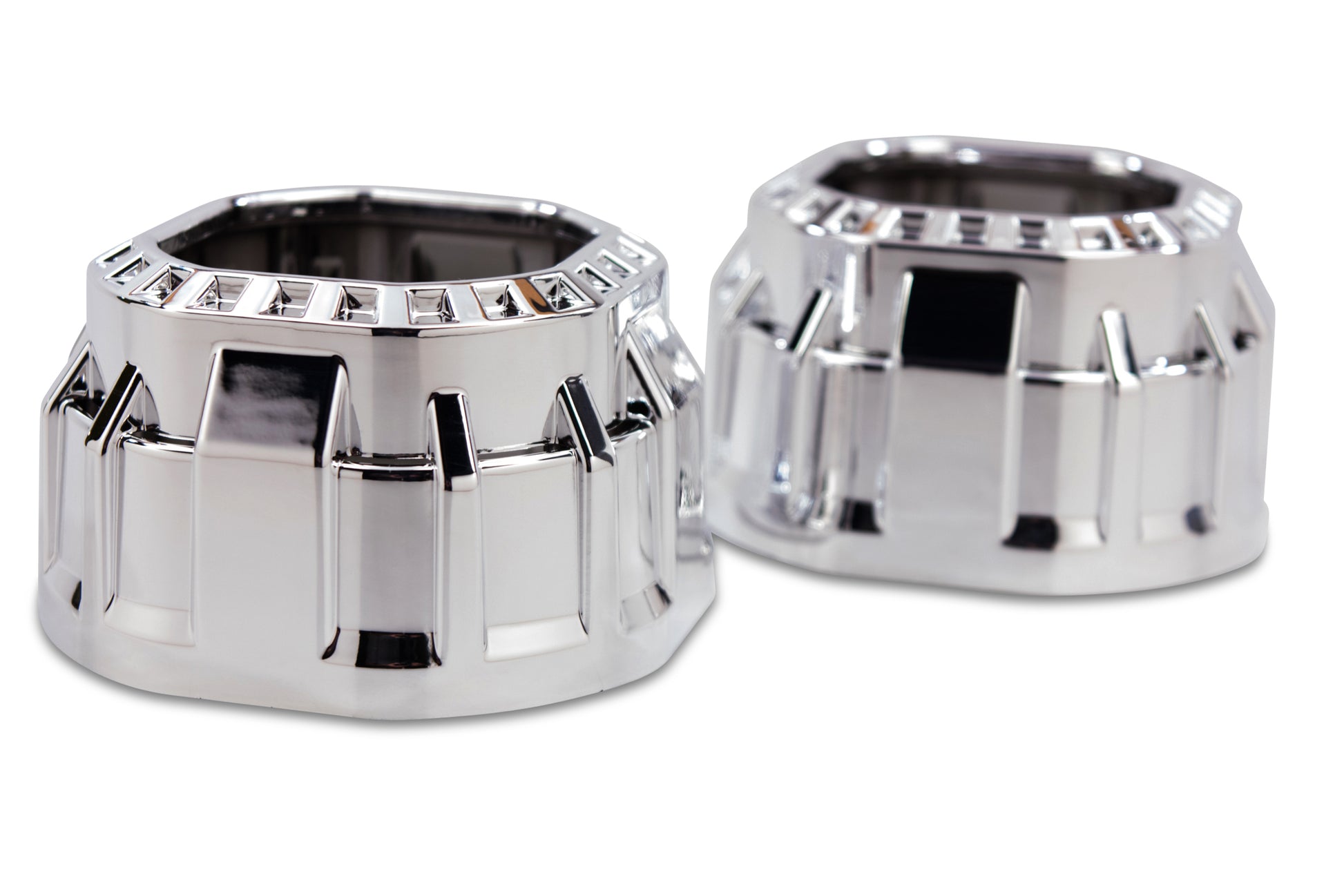 EspañolHip to be Square: A menudo se solicita, pero nunca se entrega: una versión elegante con lente cuadrada del proyector Mini H1. Aunque todavía no existe una verdadera versión con lente cuadrada del Mini H1 y probablemente no exista... aquí viene la segunda mejor opción: ¡una versión revisada de la cubierta Mini Gatling con una abertura cuadrada para rodear la lente! En comparación: No cometa el error de pensar que todas las cubiertas son iguales. Aunque puede haber alternativas menos costosas disponibles en otros lugares: las cubiertas Morimoto están hechas de plástico de la más alta calidad y tienen, con diferencia, los acabados de cromo metalizado más duraderos. Las más baratas que hay son lo suficientemente endebles como para deformarse con el calor como una bombilla HID de 35 W, y su acabado cromado se descascara fácilmente. Sin cambios: Aunque la geometría de la cubierta corta parte de la lente del proyector para crear el aspecto cuadrado, la salida de luz no se verá afectada, ¡créalo o no! Montaje: no podría ser más fácil con los Square Mini Gats. Cuatro postes internos se alinean con el patrón de pernos en la sección media de cualquier proyector Mini H1 de cualquier generación, ¡así que se atornillarán de inmediato! Recorte: tenga en cuenta que recortar las cubiertas es una tarea común al realizar modificaciones. Ya sea que se requiera para despejar parte del proyector o para que encajen dentro de la geometría de la carcasa del faro, es normal. Afortunadamente, están hechos de plástico, lo que hace que sea fácil. Recomendamos una herramienta manual Dremel con ruedas de corte EZ Lock para facilitar el trabajo.