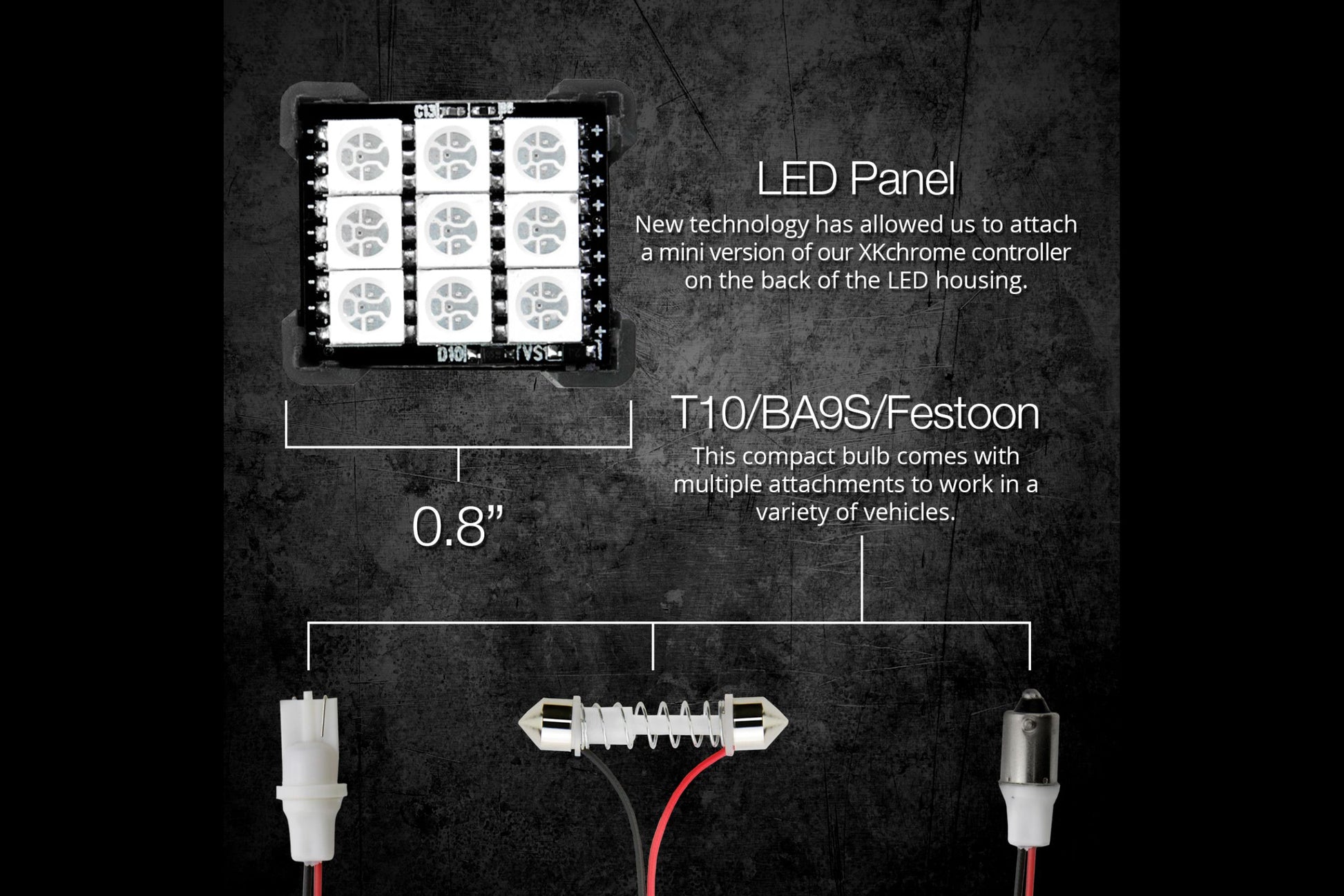 Iluminación de acento: además de agregar luces adicionales dentro de su automóvil o camioneta, cambie la bombilla de luz de techo de serie por un panel Festoon XKGlow que puede cambiar al color que desee. ¡Es casi una obviedad! De XKGlow: con nuestras nuevas bombillas Festoon XKChrome, ¡la iluminación controlada por aplicación nunca ha sido más fácil! Al integrar nuestro controlador Bluetooth XKChrome en la parte posterior de la bombilla, el usuario puede simplemente quitar la bombilla vieja, colocar esta en su lugar y ¡listo! La facilidad de instalación y la funcionalidad de la aplicación insuperable hacen que estos sean el complemento perfecto que le dará a su vehículo ese toque adicional. Controladores XKChrome: a menudo considerado como una de las mejores aplicaciones RGB Bluetooth, XKChrome de XKGlow ciertamente tiene una amplia variedad de modos y funciones para adaptarse a todos los gustos. Además de poder seleccionar casi cualquier color, la aplicación incluye la opción de combinar un color según la cámara de tu teléfono, 15 temas preestablecidos, un modo de creación de temas, función de anulación de señal de giro, colores relacionados con la velocidad, sincronización de música y una anulación de cable sensor. ¡Salvaje!