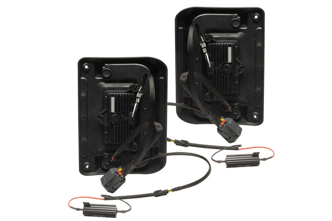 Introducing Oracle's latest innovation: the Aggressive Blacked-Out LED Tail Lamps. Elevate your JK Wrangler with these stunning upgrades for your vehicle's rear lighting. Experience upgraded LEDs that enhance all your tail lamp functions, from Driving Lights to Brake Lights, Reverse Lights, and Turn Signals. Installation is a breeze with the Plug-and-Play design, seamlessly connecting to your factory JK tail light socket. Say goodbye to dashboard warning lights, thanks to pre-wired Load Equalizers. Plus, these tail lamps boast a robust IP67 waterproof rating for durability in any condition. Upgrade your ride with Oracle Lighting today and make your JL Wrangler stand out, even without the factory LED package!