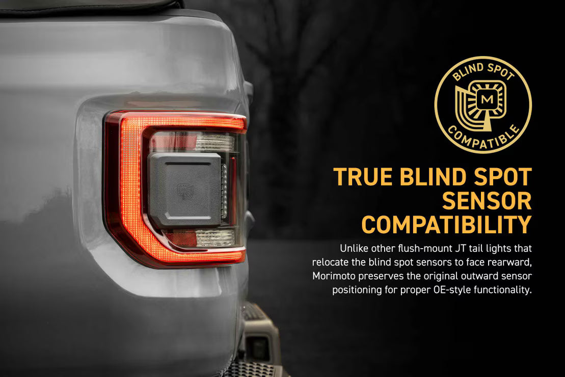 The Morimoto XB LED tail lights are the category killer that every JT owner has been waiting for. The low-profile design. The advanced, high output optics. The blind spot compatibility that works with every version of the truck from the base model, up to the Rubicon... the XB Low-Pro Tail Lights for the Jeep JT are the full package! In comparison to other flush mount tail lights for the JT that relocate the sensors to face the rear, the XB LED tails are the only ones on the market that maintain the original outwards positioning of the sensors, to guarantee full functionality of the system as designed. No compromises. All Morimoto tail lights are designed to comply with all DOT, SAE, and FMVSS108 regulations for rear-facing lamps. Morimoto prides themselves on offering stylish, high-performance and safe products for serious enthusiasts, which is why all new Morimoto products are verified by trusted third party labs for compliance and are backed with an industry-leading five-year warranty.