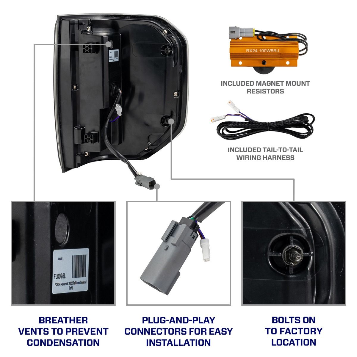 Plug-and-Play. These tail lights for the Maverick are designed for a true plug-and-play installation on all trim levels. No cutting, no splicing, and no Forscan programming required. Thanks to the included resistors, there are no system or dashboard errors, flickering, or hyperflashing!