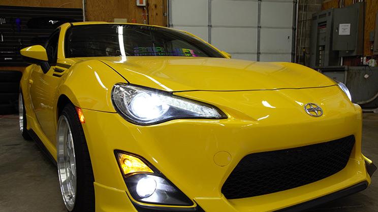 Extra function. From the factory, your special edition Scion FR-S has LED DRLs in the headlight, which come on only when the vehicle is moving, with the headlamps off. This module will allow you to keep them on at night, with your headlights. After installation, the DRLs will illuminate at half brightness when the headlamps are on. The DRLs will illuminate at full brightness, during the day, while driving with the headlights off.