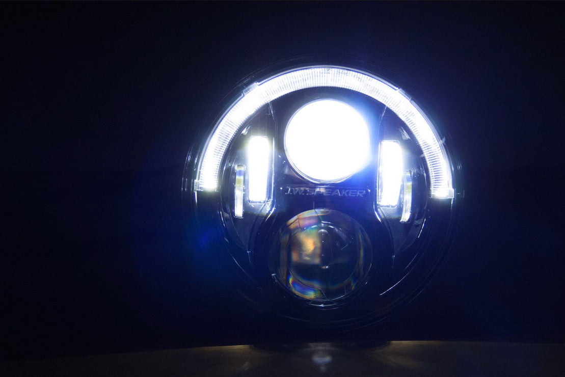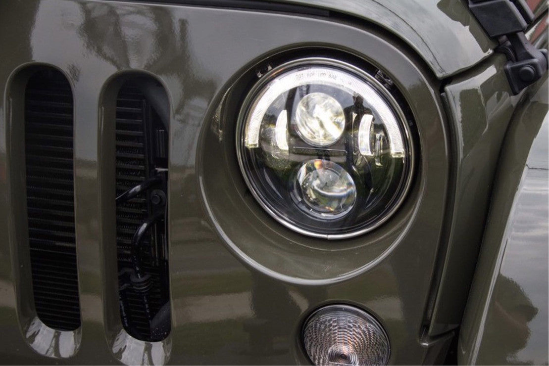 A high performance 7inround Jeep LED headlight offering dual-burn high & low beam optics. This technology combines your high and low beam when turning on your high beam, providing the driver with both widespread visibility along with a powerful punch of light down the road. The Model 8700 Evolution J2 Series offers a new technology that we call Dual Burn--giving our riders that powerful punch of light they are looking for at night, while maintaining the widespread visibility : lighting things up for both on and off-road users. This new series, referred to as the J2 Series, offers three new Jeep LED lights: dual-burn off-road headlights, smoked turn signals, and carbon fiber jeep fog light kits, all with plug & play installation. Features: Dual Burn high & low beam optics for extra punch of light, No anti-flicker harness required, Plug & play installation, DOT & Transport Canada compliant for on-road use, Black bezel or hydro dipped bezel with carbon fiber pattern, ComfortLite high beams. Street legal supporting DOT standards: DOT versions are for use in the U.S. DOT-compliant guarantees that your lights are legal on the road, meeting section 108 requirements of the United States Federal Motor Safety Standards. Your DOT-compliance is clearly etched on the lens of the light. Application: The Model 8700 Evolution J2 Series is intended for use on 2007+ Jeep Wrangler JKs & Jeep Wrangler Unlimited. This series will fit 2017 Jeep JK models. Refer to specifications for more information on which models offer plug & play. An additional mounting ring kit may be required.