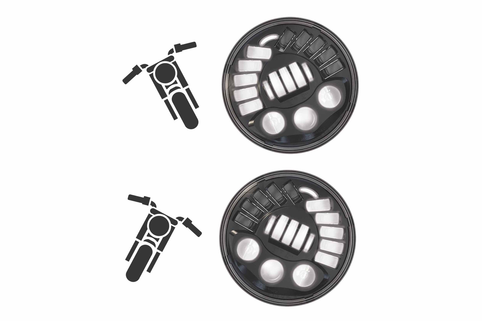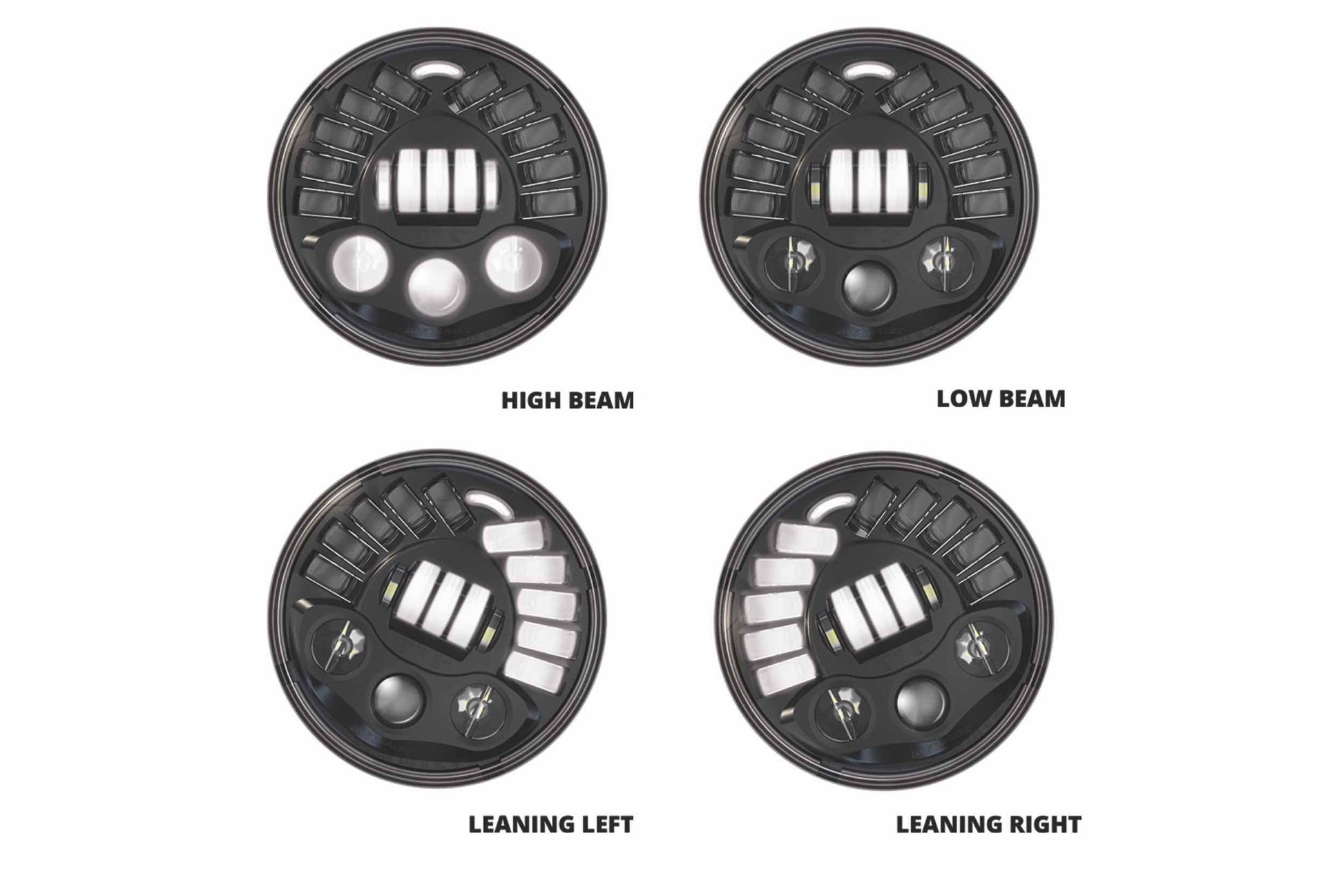 The NEW Adaptive 2 Series headlights have been improved to feature Adaptive technology when using the high beam, in addition to the low beam. Providing ditch-to-ditch lighting to eliminate dark corners on sharp turns and a punch of light 1,500 feet down the road to give you a safer and more confident ride to master the corners. The Model 8790 Adaptive 2 motorcycle LED headlight calculates bank angles on a real-time basis using proprietary technology and on-board sensors, automatically directing the light array up or down as the motorcycle leans. This additional illumination fills in the gaps that traditional headlights can't. This new adaptive headlight combines innovative low beam optics and ComfortLite high beam optics to provide best-in-class foreground illumination and light above the horizon (respectively) which dramatically improve rider comfort and safety. The heavy-duty, die-cast aluminum housing and state-of-the-art LEDs not only deliver premium performance, but also give a bike a truly unique look! Features: Improved to feature adaptive technology with the high beam, in addition to the low beam, On-board intelligence senses leaning angles when cornering to control light, Dynamically fills in dark areas while turning, Breakthrough improvement in visibility and safety, Plug & play solution for 7in round (also known as PAR56) motorcycle headlight buckets, DOT & ECE dual-compliant headlight, Dual Burn high & low beam optics for extra punch of light, ComfortLite high beams. Fitment: Use our Motorcycle Garage to enter the Make, Model & Year of your motorcycle and find the headlight and mounting hardware that works with your bike. Refer to our Motorcycle Headlight Fitment Guide to see if your bike needs a Mounting Ring Kit, available for fairing mounts on older model bikes.