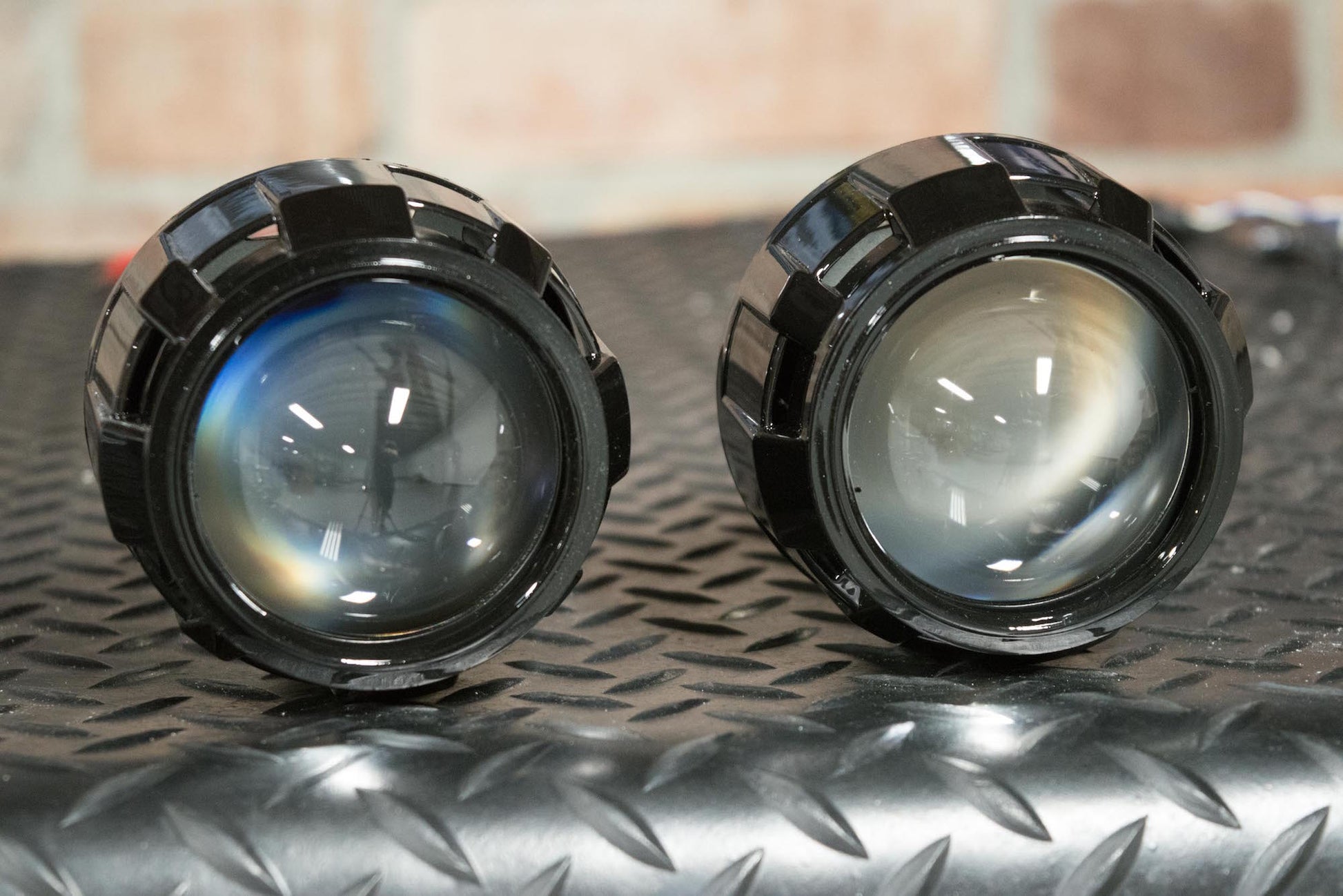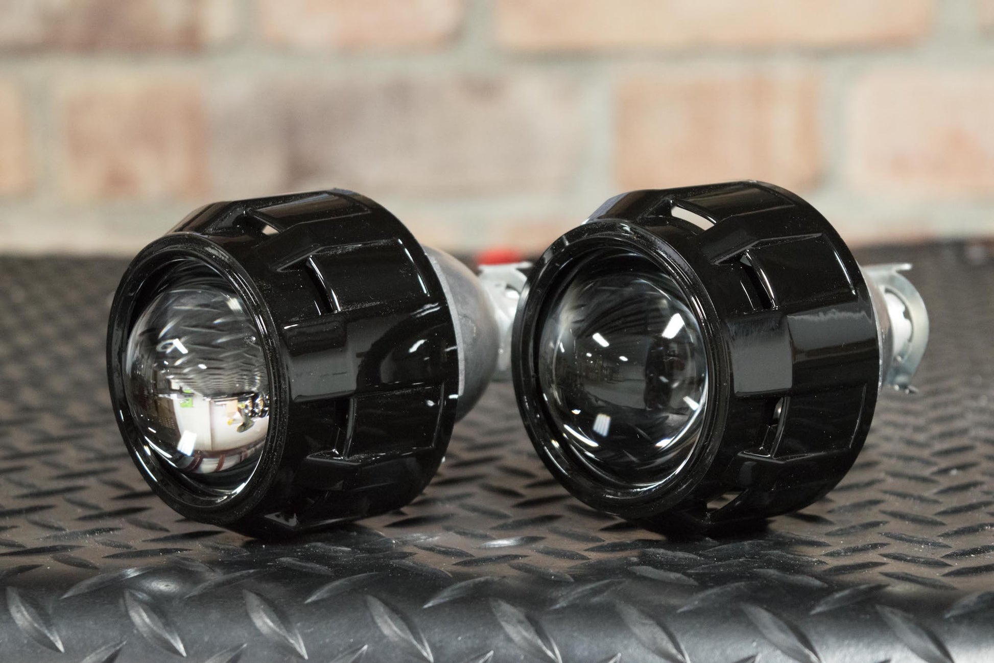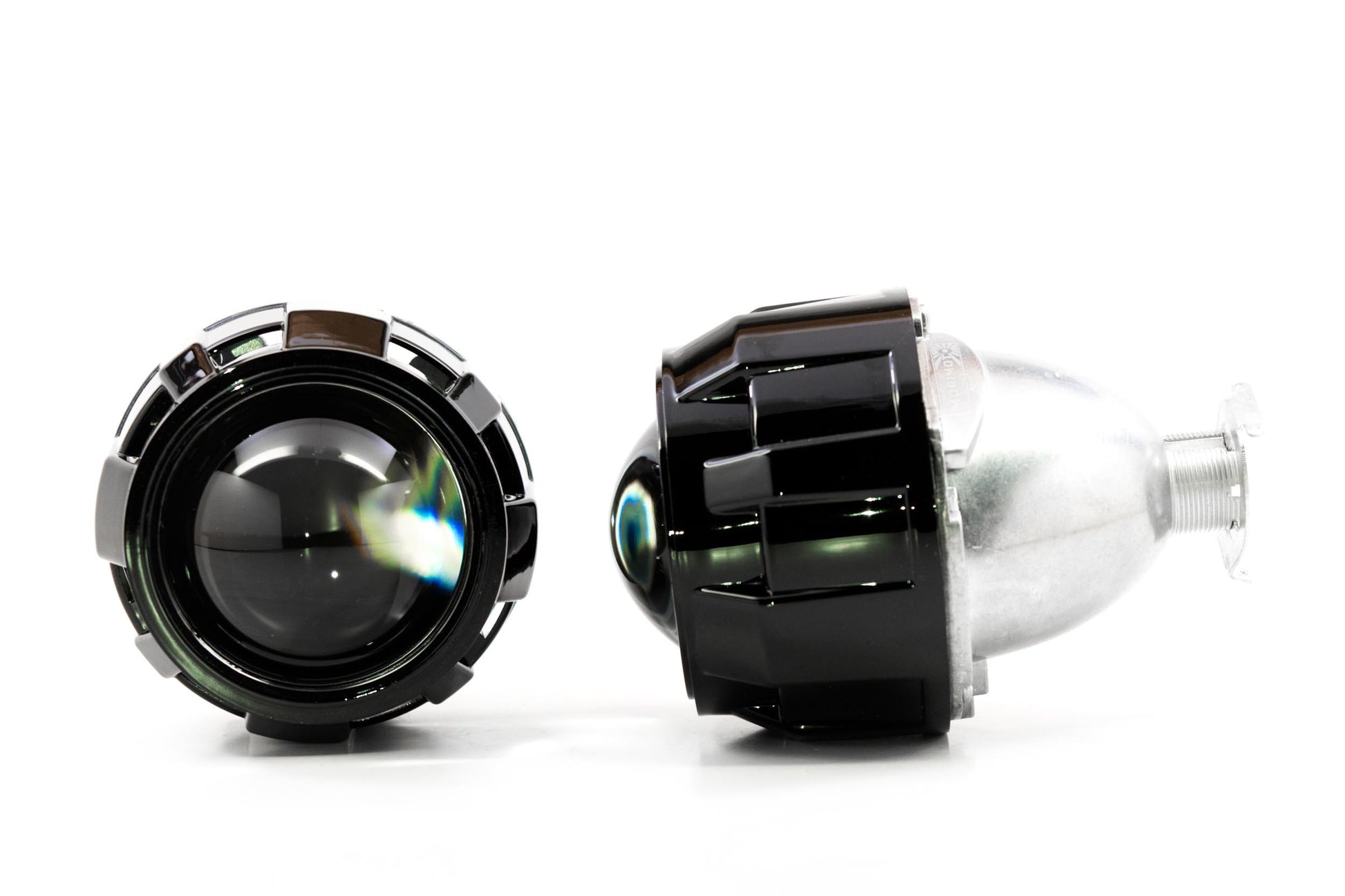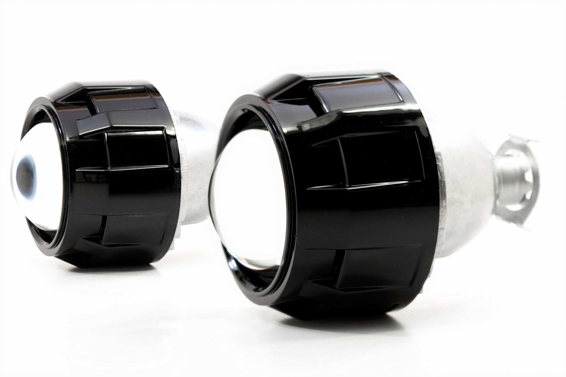 Mini Gatling Gun: The Mini Gatling Gun is a smaller version of the popular Gatling Gun design, made for use exclusively with the Morimoto Mini H1 bi-xenon projectors. Since it won't fit anything else, they're automatically included with those projectors by default. The chrome mini gats have been a staple in our catalog forever, and now by popular demand - a beautiful piano black version for the taking! In Comparison: Don't make the mistake of thinking all shrouds are created equal. Even though less expensive alternatives may be available elsewhere: Morimoto shrouds are made from the highest quality plastic and have by far the most durable painted finishes. The cheapo's out there are flimsy enough to deform from the heat just a 35W HID bulb, and their finish easily flakes off. Mounting: could not be any easier with the Mini Gatling Gun shrouds. Four internal posts line up to the bolt pattern on the mid-section of any generation Morimoto Mini H1 projector, so they'll bolt right up! LED Halos: Are a unique and effective way to further customize the look of your projector retrofit. The Profile Pivot (switchback) and Profile Pixel (RGB) systems are easy to mount on the front of your shrouds, are reliable, and of course awesome looking. To determine which size is best for you - check out the size-guide in the images above. Trimming: Please note that trimming shrouds is a common task when retrofitting. Whether required to clear part of the projector, or fit within the geometry of your headlight housing; it's normal. Luckily, they're made of plastic - making that easily possible. We recommend a Dremel hand tool with EZ Lock cutting wheels to make the job easy.