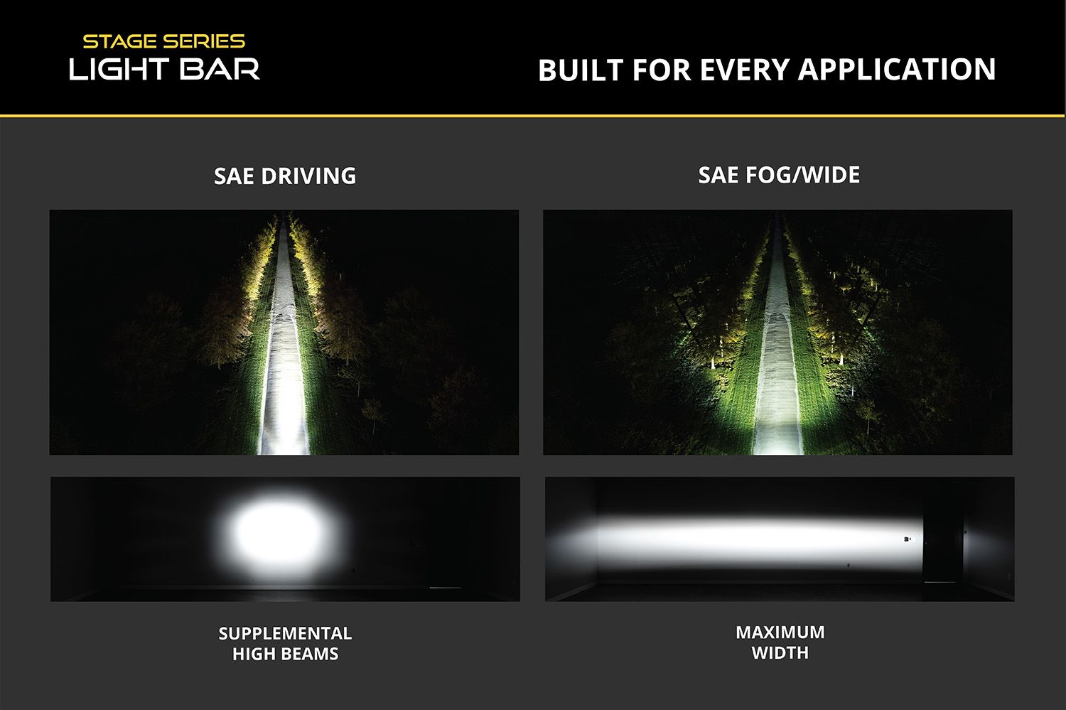 Designed for Performance. Each Stage Series Light Bar has been engineered from the ground up with the most modern optical, thermal, and circuit board technologies to provide more output than any other light bar on the market. Unlike reflectors, TIR optics capture and focus nearly all of the light output, shining it only where you need it, without glare or wasted light.
